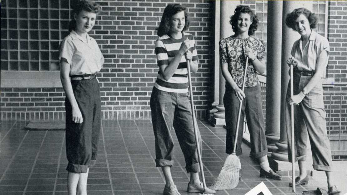 Just dump it on the couch and fold it as you watch TV. Then put it away in drawers, as these Texas ladies did in 1948.