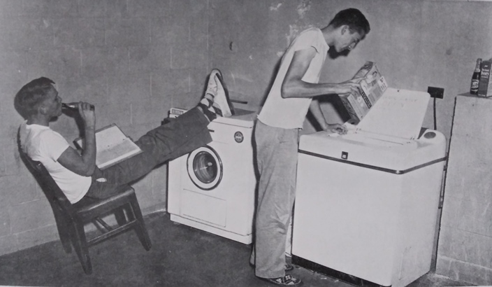 While one student pours cola down his gullet, one pours soap powder into a machine at Northwestern University in 1957. No doubt those argyle socks will be at the bottom of next week’s hamper. Have you ever used powdered soap?