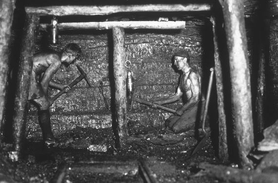 Yesterday we visited Yorkshire coalminers sipping pints in a colliery club. Today we visit them on the job. Above is a coalminer from Durham, England in 1952.