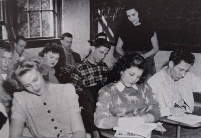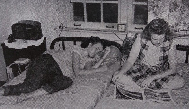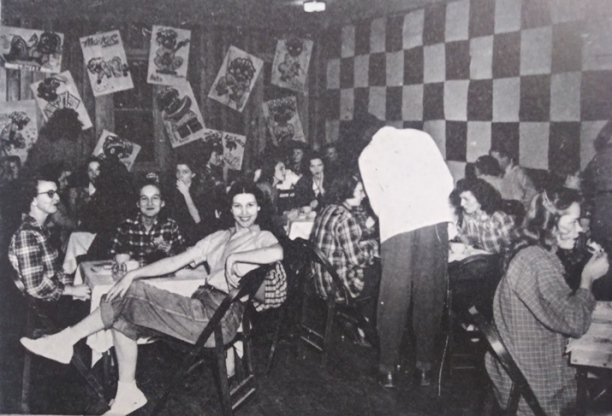 Even slim-hipped WWII vets can’t make three a comfortable proposition in this booth. Reaching for his Coke, he’d knock a bottle over. How is the fellow in the middle supposed to move? Can he breathe with his pal’s pipe smoke literally four inches from his face?