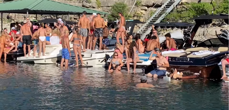 Now that businesses are opening up, folks are itching to get out of their houses and back to work. After seven weeks sans income, my husband returned to his job, carrying his mask and his hand sanitizer (which they are selling at 7-11 for $8 at about 3 oz!), making the arduous commute into Austin. Many young folks in Austin aren’t wearing masks at all, or much of anything, according to this picture taken at Lake Travis on Saturday. I guess they figured social distancing is just a suggestion.