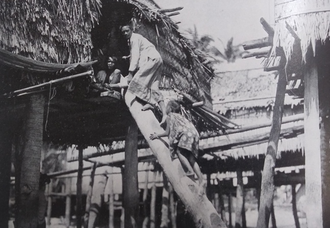 Sure, you could replace them with wrought iron balusters, but isn’t that trite? What you need is to get yourself a big honking coconut tree, get your best stabbing knife, and knotch it up at intervals as make-shift steps!