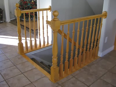 Tired of walking past those round wooden spindles pre-turn of this century? Ashamed to have guests notice that yellow brown color that dates your abode? I wouldn’t even want to visit a home with this shade of devil’s stain. Why, it’s the shade of nicotine teeth.
