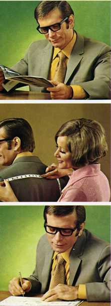 Prior to the convenience of online shopping, all you had to do was pick your fabric, have your wife measure you, and send in your check. Easy-peasy, right?