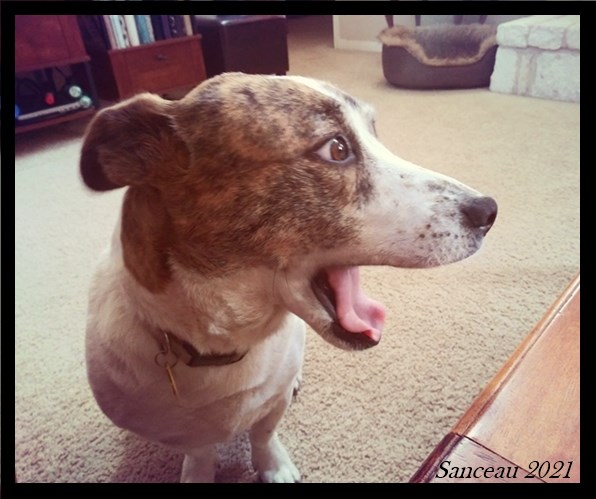 Roxie, shown here, is our youngest pound dog. Tonto is our 13-year-old pound dog, now blind and sometimes incontinent if made to hold his bladder overnight. As such, he sleeps in a kennel now to prevent him from messing on a carpet, which though rare, has happened. Roxie has the run of the house each night, as she is master of her bladder. However, the past couple of months have seen her venture over to his kennel, a place she had never before visited. She began spending a few minutes in there each night. Was she marking it with her scent? Didn’t she realize she was the lucky one, free to roam about, not jailed?
