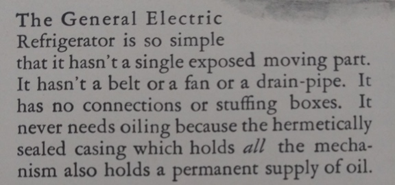 But they didn’t have the monopoly on fridges. Behold the GE model, where all four food groups fit just swell–even wine, which was illegal to sell.