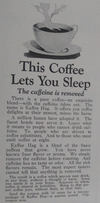After all that polishing, Pearl might need a coffee break. But it’s 3pm! It would keep her up all night. Nope, not with Kaffee Hag, which sounds like Cliff Clavin is pronouncing it. Kaffee Hag lets all you hags sleep.