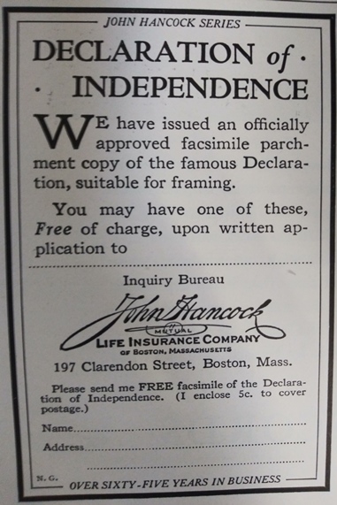 And look! You could even get a FREE copy of the Declaration sent to you! No handling fee; just postage.