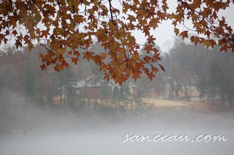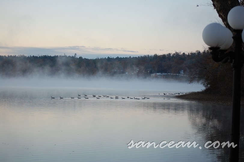 Tuesday morning was a different story; the sky was overcast, and ducks floated past the fog at dawn.