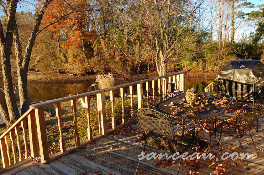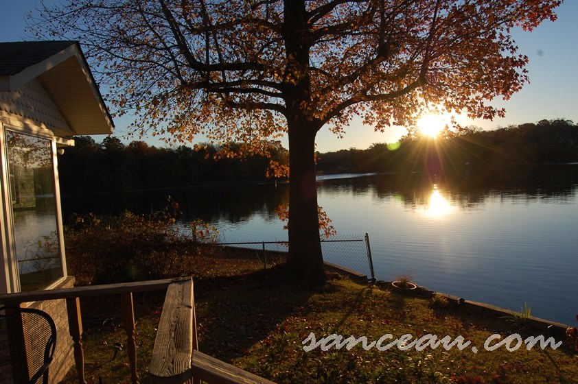 Last week, we vacationed in Hot Springs, Arkansas, renting a lakeside home that allowed for this beautiful sunrise shot. Sunlight soon spilled over the back deck.