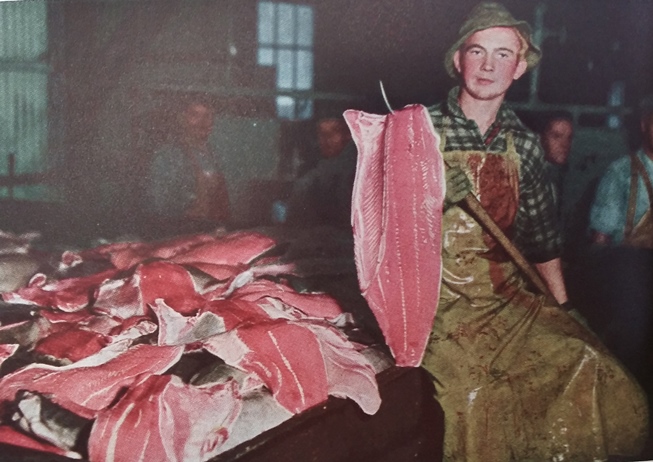 Kipper are actually herring, same as the ones held by the “Scotch lassies” above. These girls numbered among the many Scots who came to work by the hundreds to Whitby, a seaside town in North Yorkshire, England. During the herring season of 1932, folks literally rolled up their sleeves, got their hands dirty, and dug in. Might not be as easy as shooting fish in a barrel, but it’s honest work.