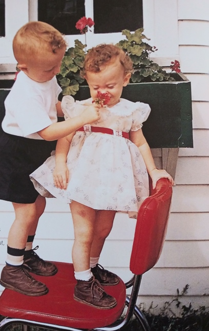 Two-year-old Billy Jones of Wilmot, South Dakota plucked a geranium from his mother Jean’s flower box in August of 1957, and shoved it into the face of sister Lois Ann, 1. We can only hope that Lois gathered her rosebuds while she may, and lived a life of being fully present and carpe-ing the diem. We also hope that neither sibling is perched atop red diner chairs anymore, as a broken hip could only make 2020 that much worse.