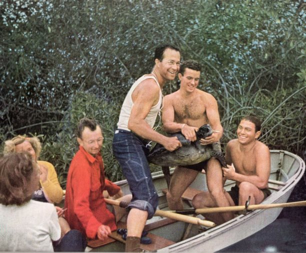 We’ve all been there, right? Stuck in a boat, wearing our wifebeater and cuffed dungarees, wrestling a half-naked man for rights to the Galapagos Island sea turtle… Actually, these were 1949 National Geographic staffers, who had initially been searching for land turtles, but came up empty-handed. Nice work if you can get it.