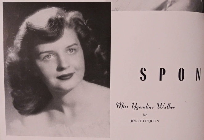 Next up is a name I bet you’ve never heard, and probably can’t pronounce. It’s Miss Ygondine Walker! And as you can see by the cropped page, she was a SPON-sor. Extra credit for getting nominated by Mr. Pettyjohn, though I’d rather hear a Pettytom.