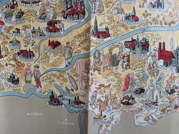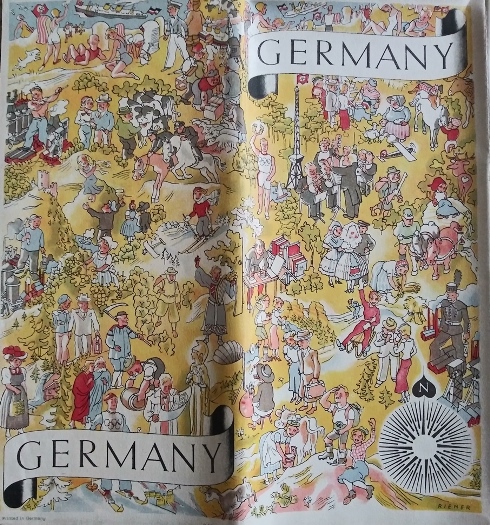 Yep, it’s grandpa’s map time again. This time, it’s Germany! The last referenced date on it is ’33. Hitler has just become chancellor, he’s begun his purge of the civil service, professing national socialism. The Gestapo is born, and Germany is ripe for visitors!