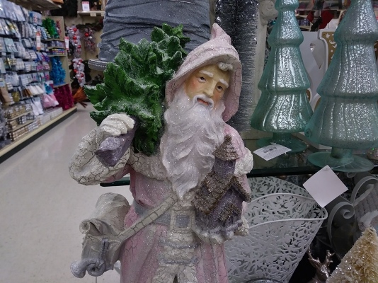 Lastly, we have a rotund and active Santa (no sitting for him!). Fluffy beard? Check! Rosy cheeks? Check! Proper hat? Check! He appears to be unveiling a new fleet of trains.