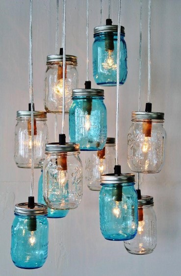How about a DIY project? I know mason jars are cute, but I honestly don’t even like drinking out of them in restaurants and bars that offer them. It’s supposed to be quaint and down-home, but lips just don’t feel good against jar rims–and now that cities are outlawing straws, what to do? While I admit I like the turquoise, I don’t cotton to this aesthetic. Looks like a clanky accident waiting to happen.