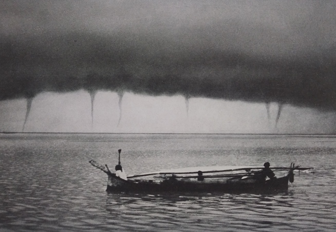 Elephants enjoy the sea at Sanary on the French Riviera. Visible in the upper right-hand corner is the big top of a traveling circus, which visited the port each summer.