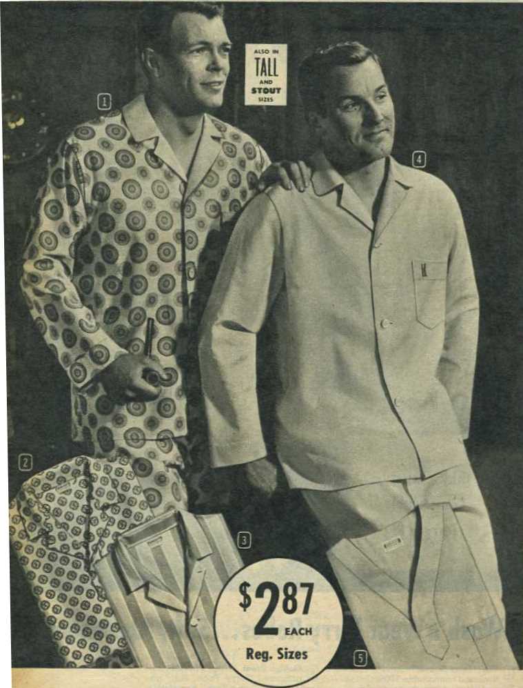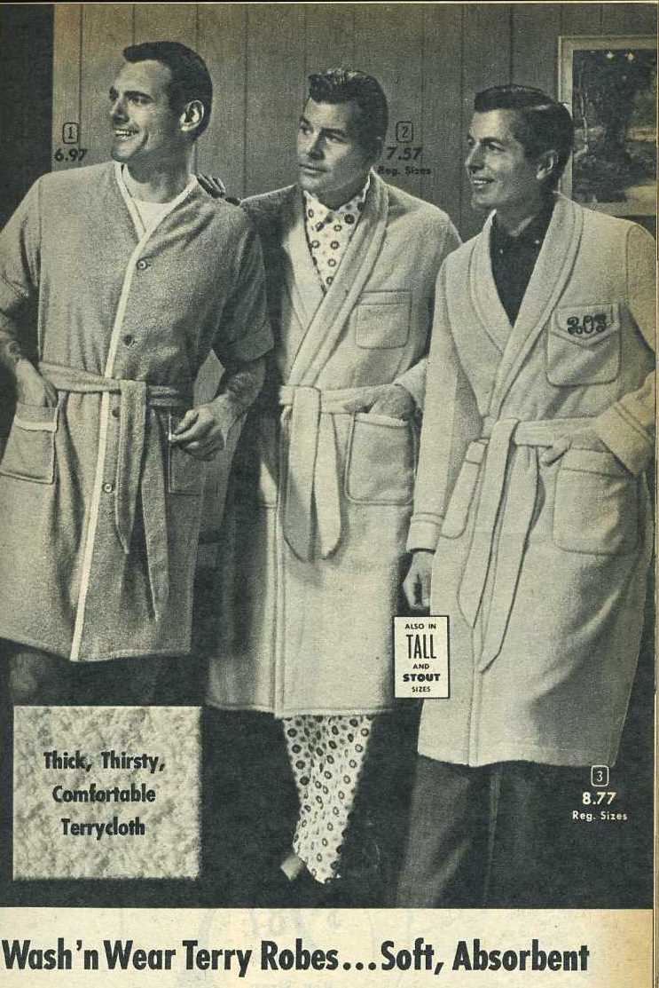 And hey, so what if you’ve packed on some pounds after turning 40? Hide that flabby belly underneath one of these swank terry robes, also in TALL and STOUT. That means 170 lbs in 1962.
