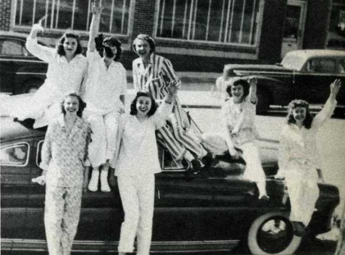 Yes, these were sold as pajamas–cotton flannelettes, to be exact. Why, look at how gay and merry these ladies look! One’s got a telescope. That’s science!