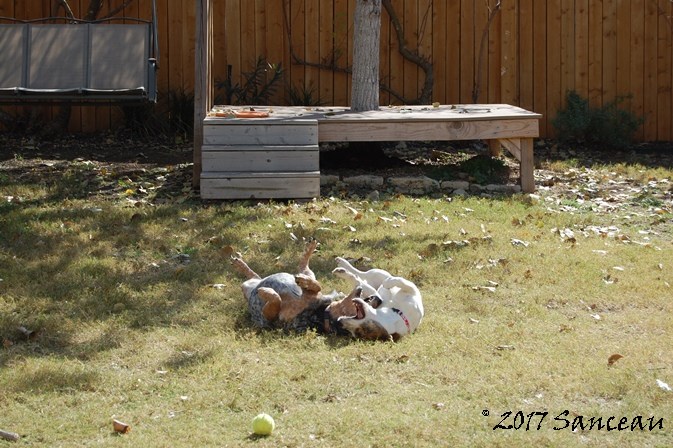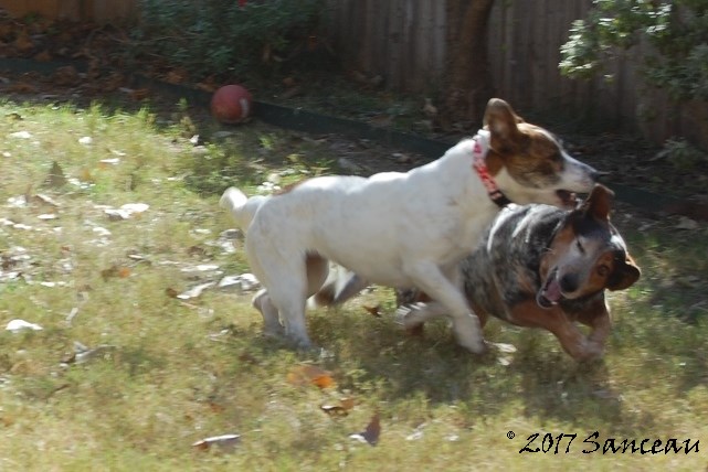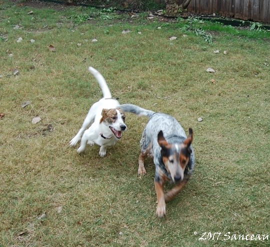 Tonto and Cone Dog, aka Roxie, have become quite the playmates over the last couple of weeks. He may be 63 in dog years, but he can still give chase.