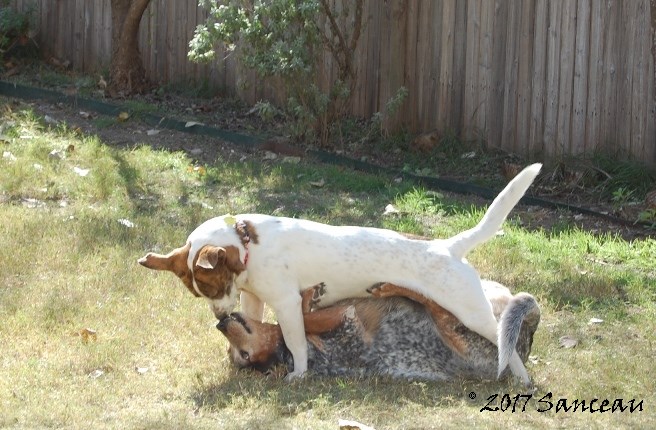 Anyway, we figured it was time to let her cavort with Tonto, eight years her senior, since they will be cellmates friends till death do them part. She quickly established herself as younger, faster, and more energetic.