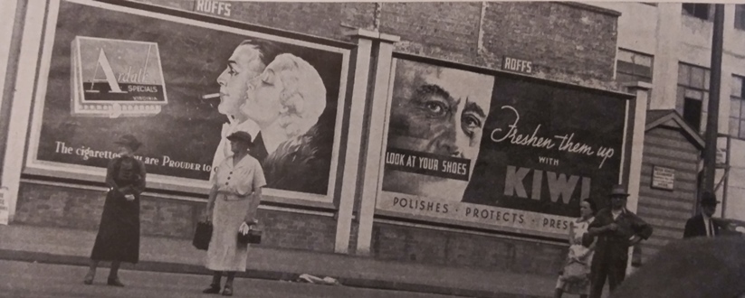 This billboard was situated on Elizabeth Street in Sydney, Australia, advertising Kiwi Shoe Polish, with an image of an unidentified man who coincidentally, bore a strong resemblance to the current president of the United States. Evidently, FDR had not authorized use of his likeness. I can’t imagine that a billboard in the US of an Australia Prime Minister would help sales of shoe polish over here. In fact, I doubt any of us could name one Australian Prime Minister.