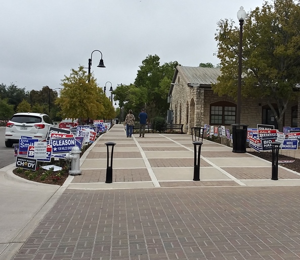 We didn’t know what to expect of our local polling place, a quick four minute drive from our home, when we stopped by this morning. Several cars lined the stretch of street up to the town hall, but to our surprise, no line existed. We donned our masks, went inside, handed them our registration cards and ID, used the touch screen in the polling booth, and were back in our car four minutes later. Add our names to the 21,500 early voters in our county so far. Easy peasy, life in the suburbs. Glad that’s done.