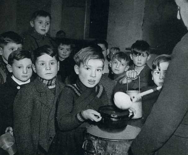 These hungry little tots are lined up for hot soup at one of the many Berlin soup kitchens. The feeding program began in November 1945, just months after WWII ended, seeking to aid the diet deficiencies incurred by the kids.