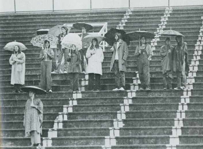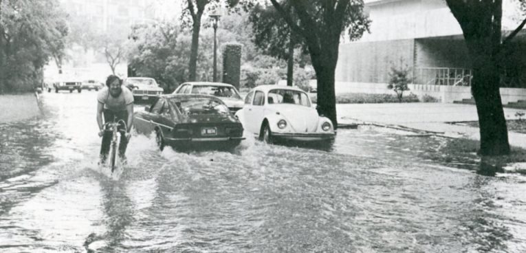 Though nothing of this proportion has ever been witnessed in Houston, my issue of the 1975 Rice yearbook shows students out and about in lesser downpours. Houston, in my own experience, can flood at the drop of a dime.