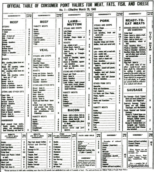 A large part of the war propaganda effort, demanded sacrifice in terms of daily activities – saving left over waste fats for use in explosives, saving tin cans for metal to be recycled into military material, eating leftovers, recycling paper, growing vegetables and canning them for later home use, saving gasoline by driving cars slower and less often. The national speed limit was lowered to 35 mph! … All Americans needed to share in the burdens of shortages equally. Not to share in sacrifices for Victory was an unpatriotic act, and often was reported. (