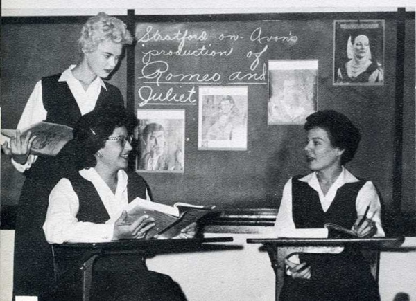 Billy Joel sang that “Catholic girls start much too late,” but what did he know? Jeanne didn’t start bleaching her hair too late. I think these ladies were right on time. Studying Shakespeare, enjoying vending machine coffee and Clark bars–these are the stuff of life.