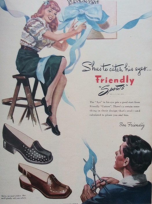 Before a cutter was a person who took a knife to their skin just to “feel something” in a world of apathy, Cutters were shoes worn to catch men’s eyes. Maybe he’s not a breast or a thigh man; maybe he’s more interested in your arches. Super. And these would have been the choice for any butterface gal back in ’47 (that’s a woman who looks lovely everywhere “but her” face).