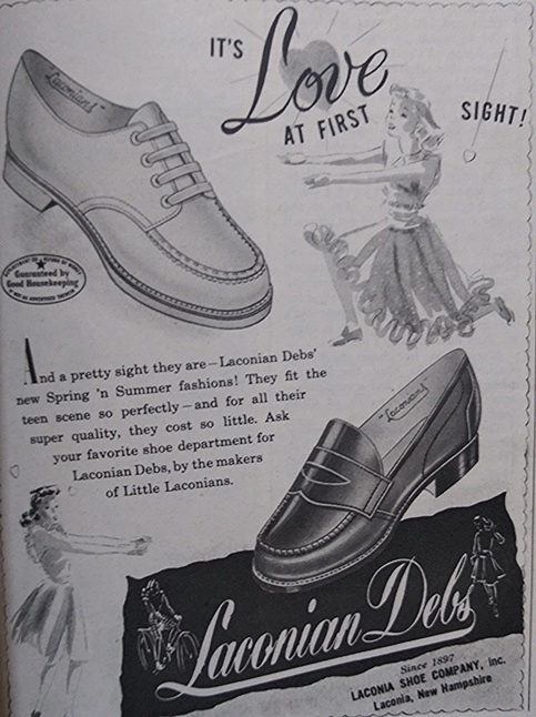 Y’all, it is rare indeed when a Google search turns up with zilch, nada. But such is the case for Laconian Debs. I guess they only existed for this one moment in my 1947 Seventeen magazine, which evidently could hardly contain their foot fetish. Apparently, those weren’t the only Debs around. Polly Debs were climbing up the charts.