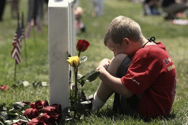 Wyatt McCain, 8, from North Pole, Alaska, looks upon his father’s grave at the National Cemetery on Memorial Day on May 28, 2012 in Arlington, Virginia. His dad, Army SFC Johnathan McCain, was killed by a roadside bomb in Afghanistan in November 2011.
