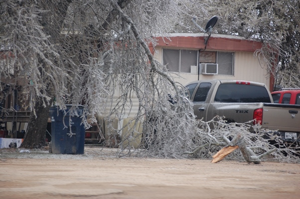 All day yesterday, as temps inched above freezing, the sounds of huge oak and cottonwood branches falling filled the greater city area. Every couple of minutes, footlong icicles, sheets of ice on roofs, and tree limbs would crash to the ground. Limbs landed on cars and fences, blocking driveways. Everyone within an hour’s radius lost trees. I wouldn’t be surprised if the entire Austin area lost half its trees. Everywhere you look, 8 and 10 foot limbs litter the yards and roads. They just weren’t made to support so much ice for three days.